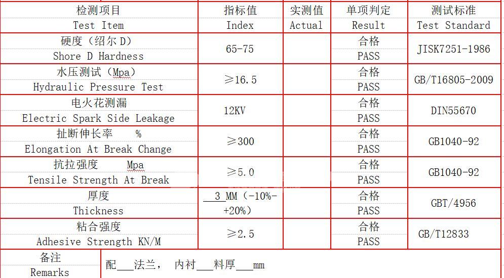 我公司生(shēng)產的(de)鋼襯塑管及管(guǎn)襯在生產製作完成之後(hòu),會根據相關執行標準由檢測人員進行(háng)廠內質量(liàng)檢測,檢測合格(gé)後出具產品質量檢測報告。那麽鋼(gāng)襯塑管及管件進行產(chǎn)品質量檢測都有哪些檢測項目呢?